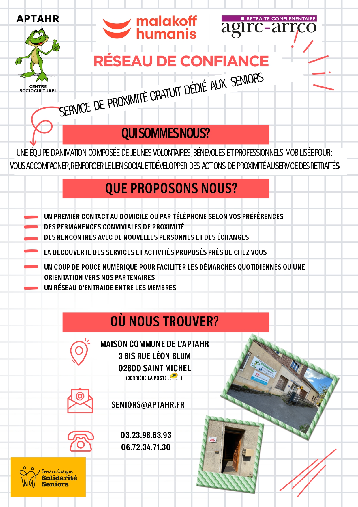 Une antenne animée par le CSc APTAHR et soutenue par Malakoff Humanis, dédiée aux séniors pour :