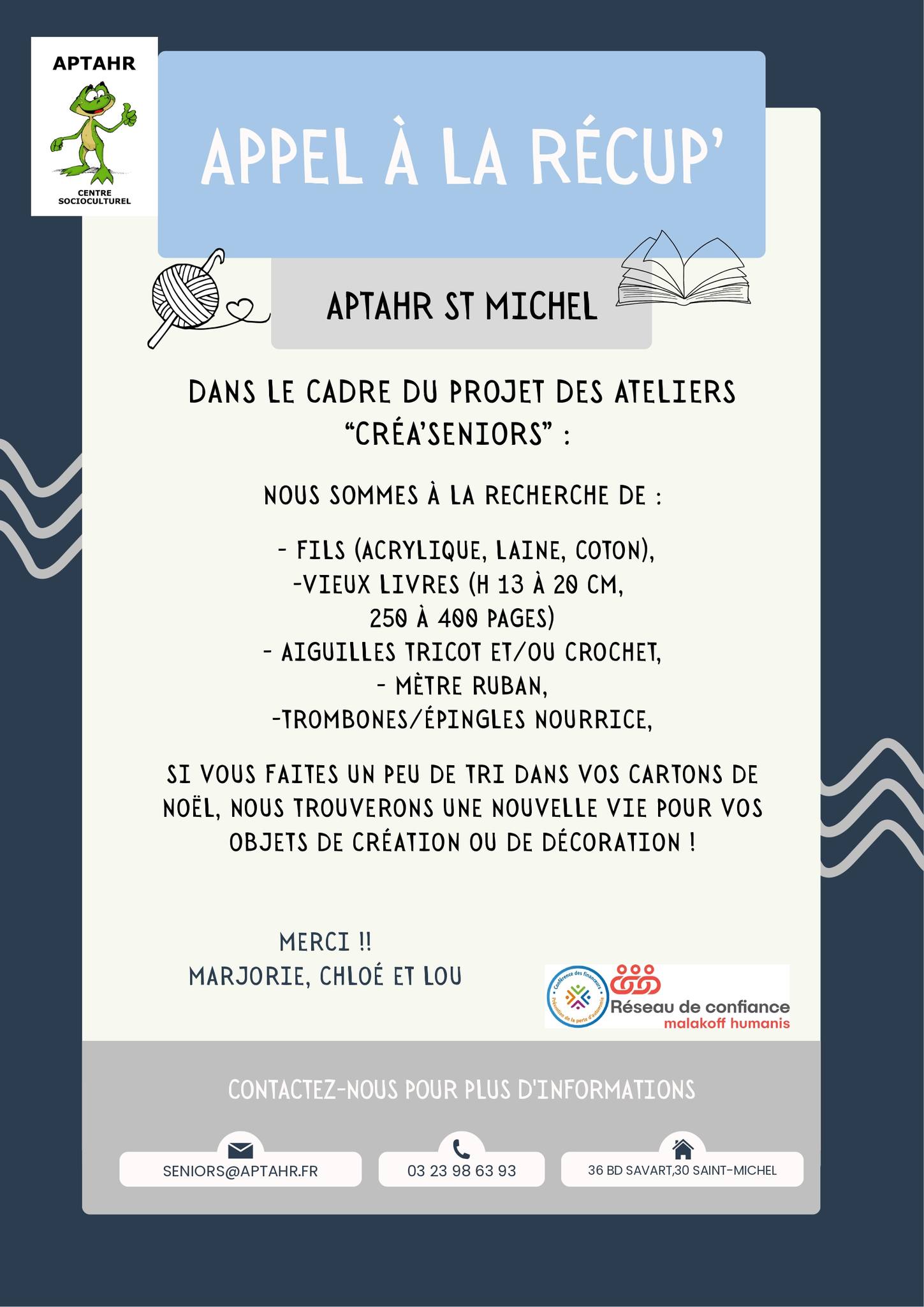 Plus d'infos, contactez Marjorie au 0323986393 ou à l'adresse seniors@aptahr.fr
